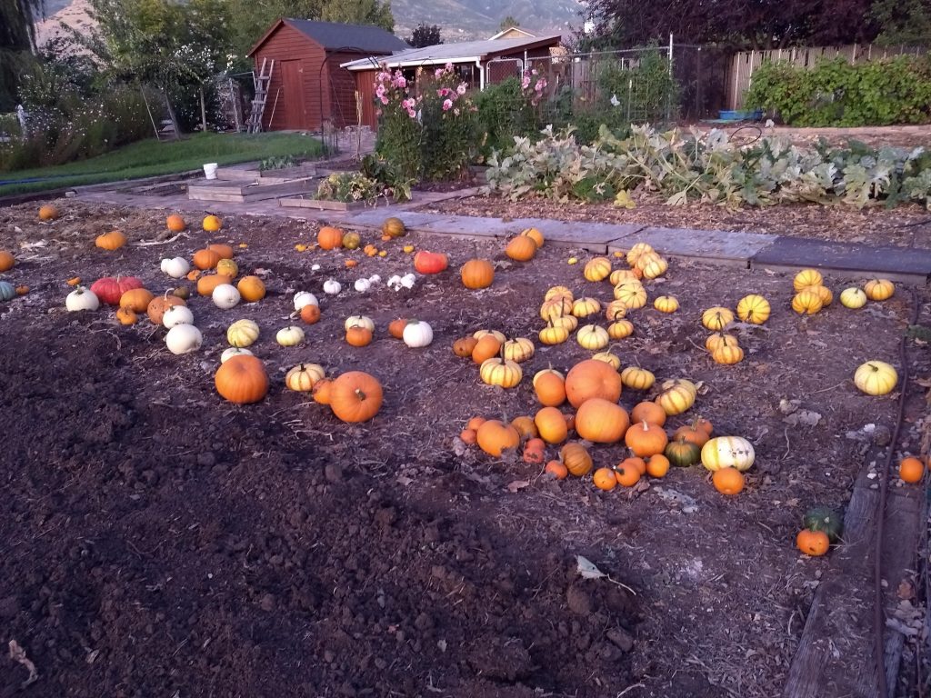 I remove all the pumpkin vines and behold–the pumpkins emerge.